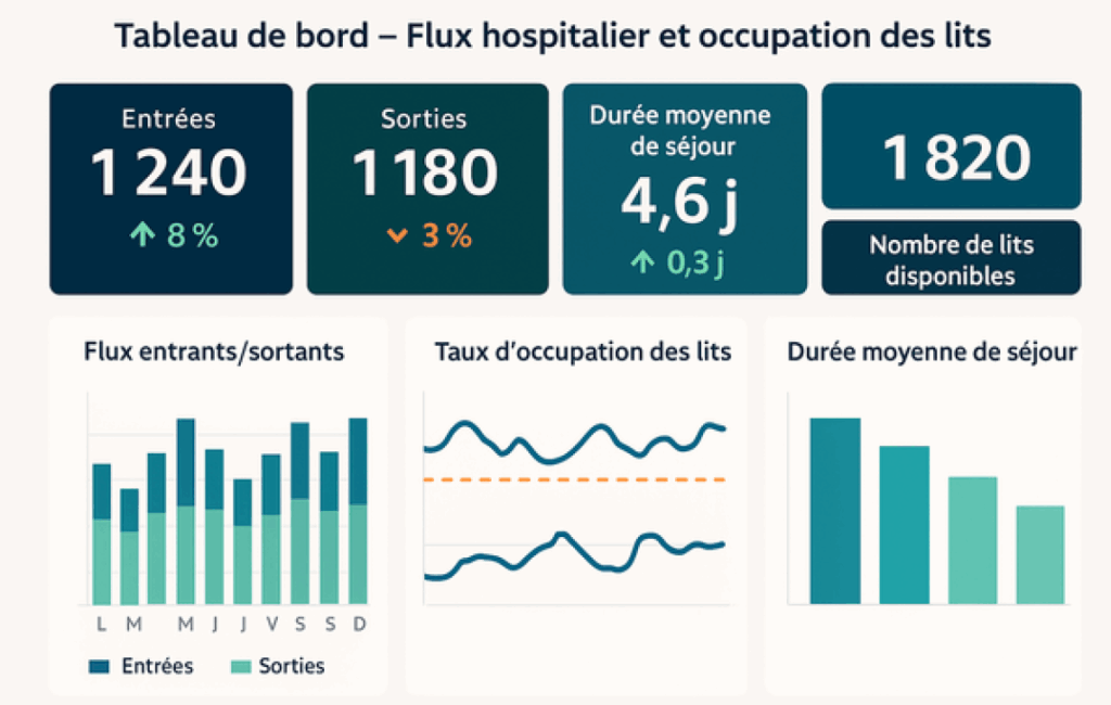 Dès le lancement du projet, l’enjeu a été de fiabiliser la connaissance des flux hospitaliers, tant entrants que sortants. La maîtrise du taux d’occupation en temps réel, la prévision sur soixante-douze heures et la compréhension de la variabilité des séjours sont apparues comme des éléments essentiels.